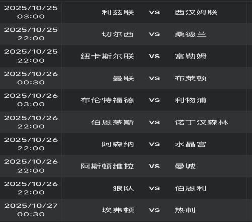 英超第9轮开球时间(北京时间)