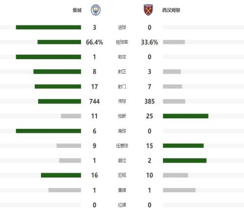 场面非常被动的西汉姆联队,在第32分钟终于形成了一次进攻,但鲍勃在大禁区右侧的扫射偏出了远立柱,没有给多纳鲁马形成实质性的威胁,半场比赛结束之前,曼城扩大领先优势,哈兰德禁区内得球后,顺势做给了中路跟进的赖因德斯,后者小角度劲射,帮助曼城带着2球领先,回到了更衣室。