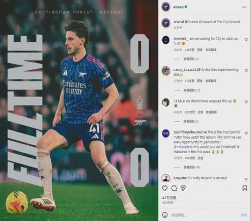 狂轰15脚仅换1分!阿森纳连平遭万条评论爆破:这真是冠军相