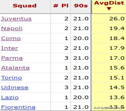 到1月中旬,同样是“最后一道防线距大门的平均距离”,国米如今的数据是17.9码(16.4米)已经不再是意甲第1,只能排在第4,在五大联赛里,国米也跌出了前10